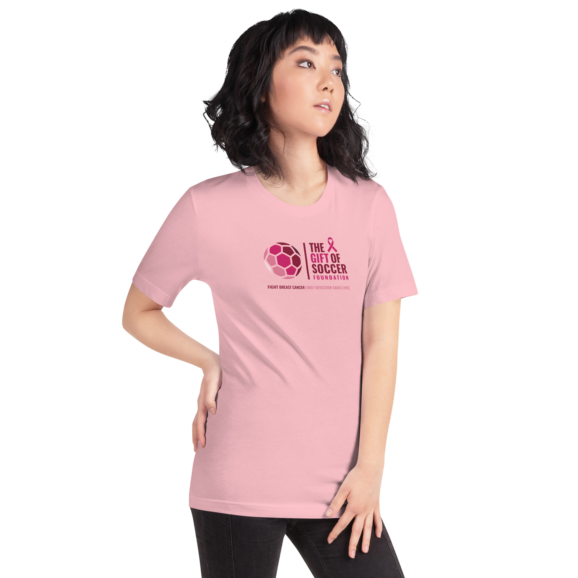Show your support and raise awareness with our Breast Cancer Awareness Tee. It features “Fight Breast Cancer, Early Detection Saves Lives.” on the front. It feels soft and lightweight, with the right amount of stretch. It’s comfortable and flattering for all. It’s a simple way to remind everyone to schedule checkups and stand together.